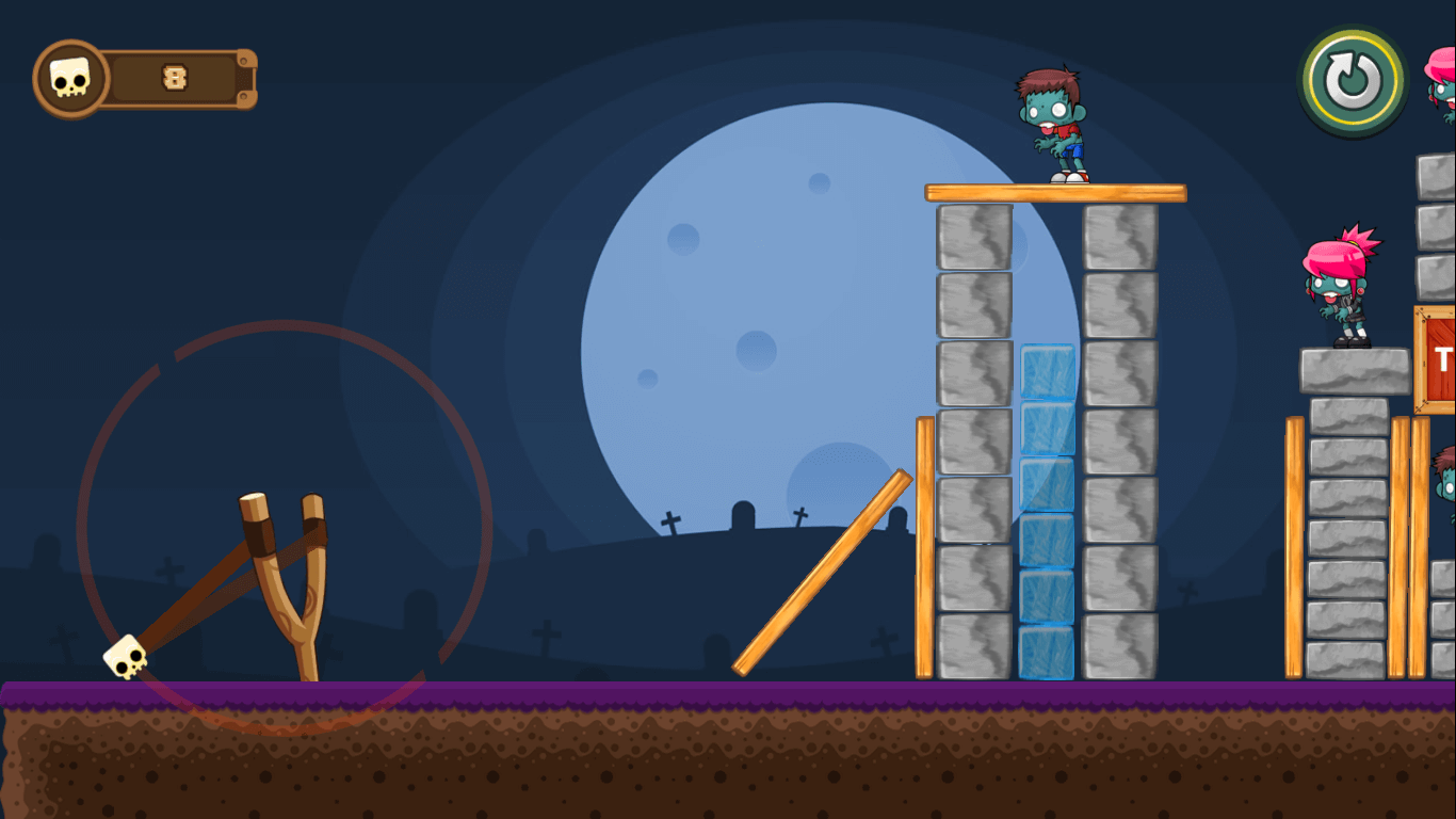 Set in a spooky world under the moonlight, you’ll face zombies hiding behind wooden, stone, and TNT structures. Every level requires smart timing, precise aim, and creative thinking to achieve victory.